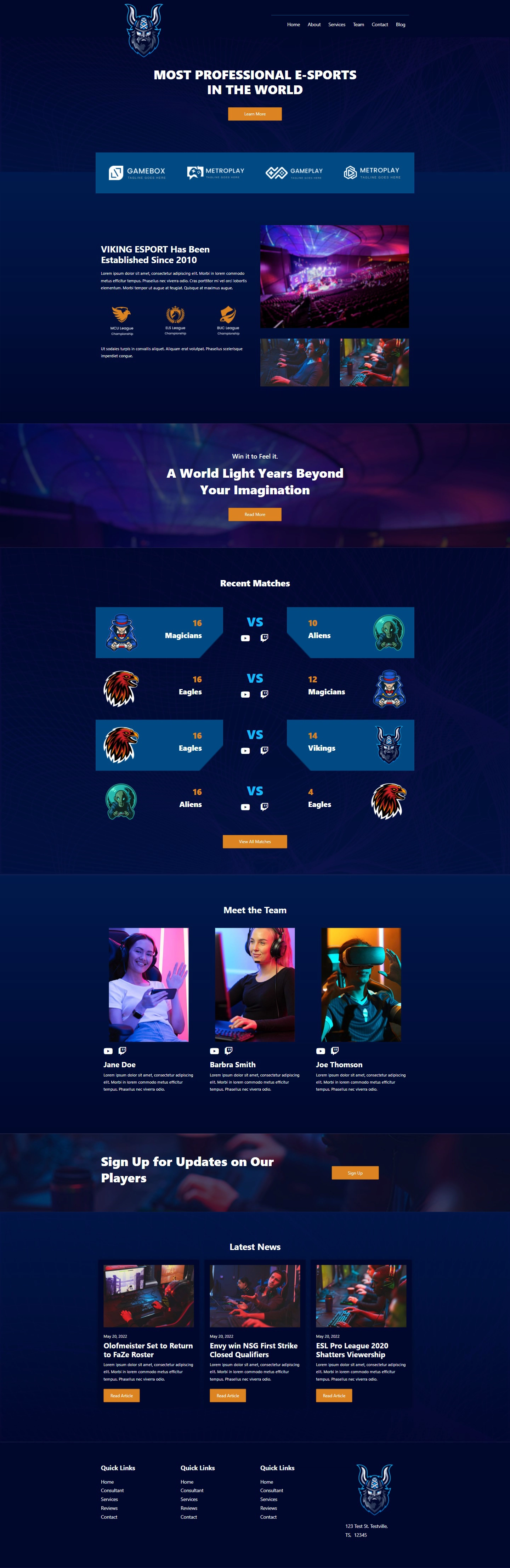This esports website template is the ultimate solution for any team. Designed to be easy to customize and update, it’s simple, straightforward, and effective.